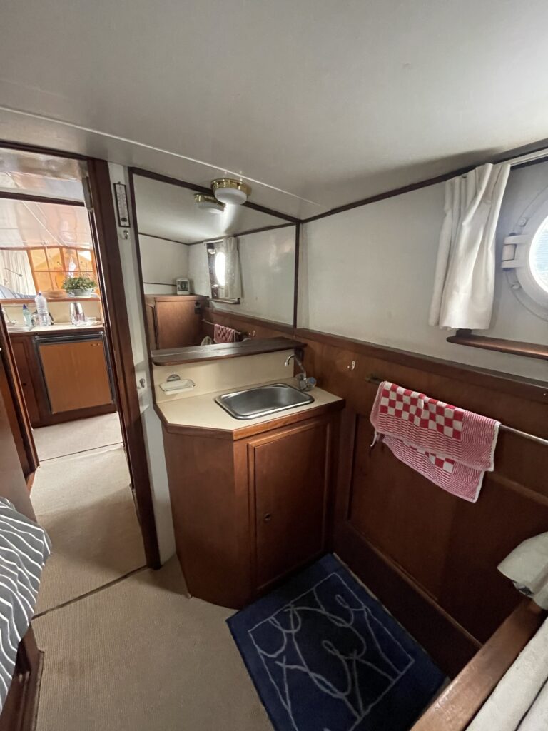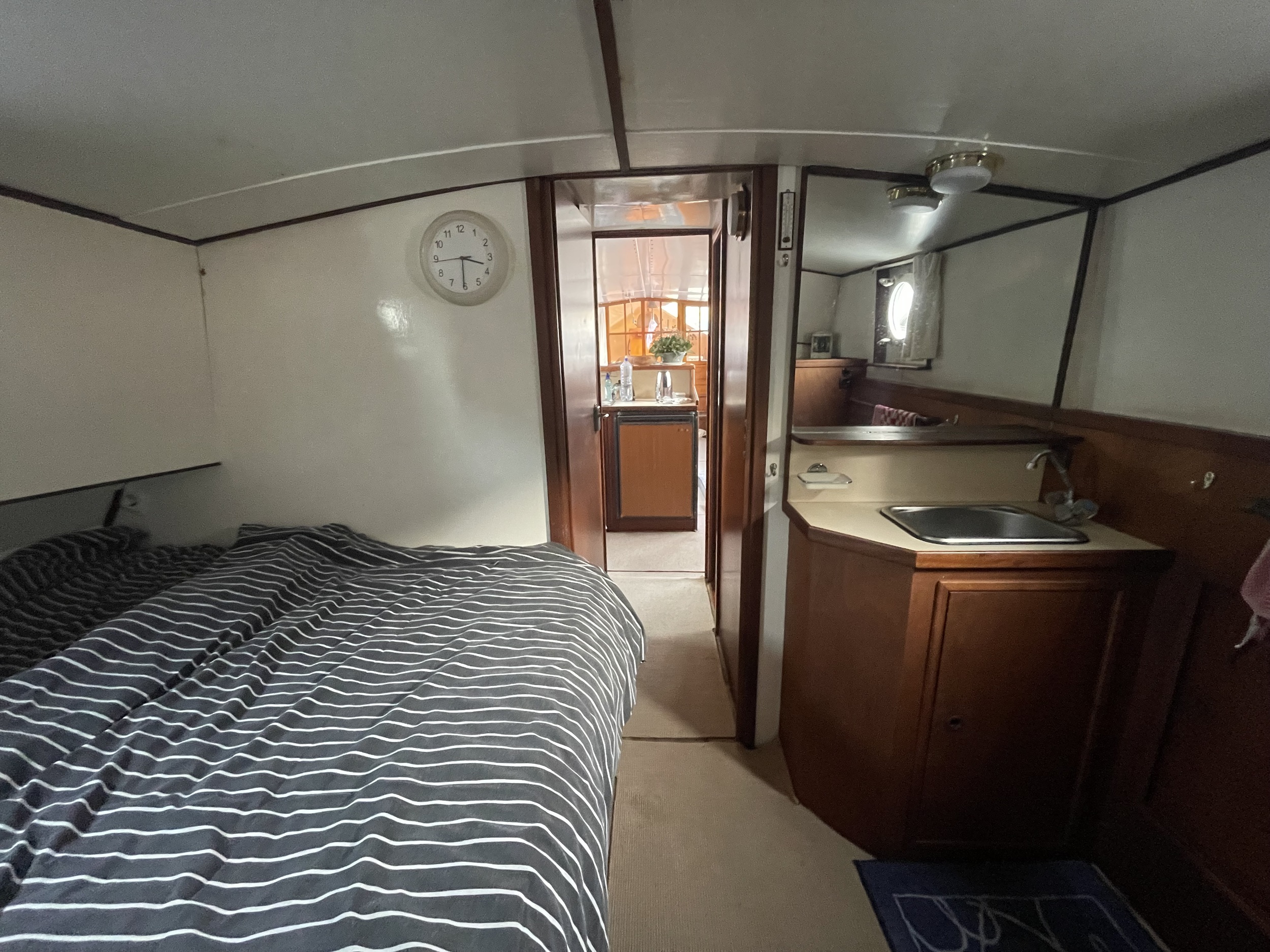 Schip heeft 4 vaste slaapplaatsen excl salon, en 2 hutten, Een hut met stahoogte.